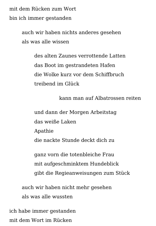 wer hat nicht diese Augen schon tausendmal im Schlaf geküsst die in der Leere sehen